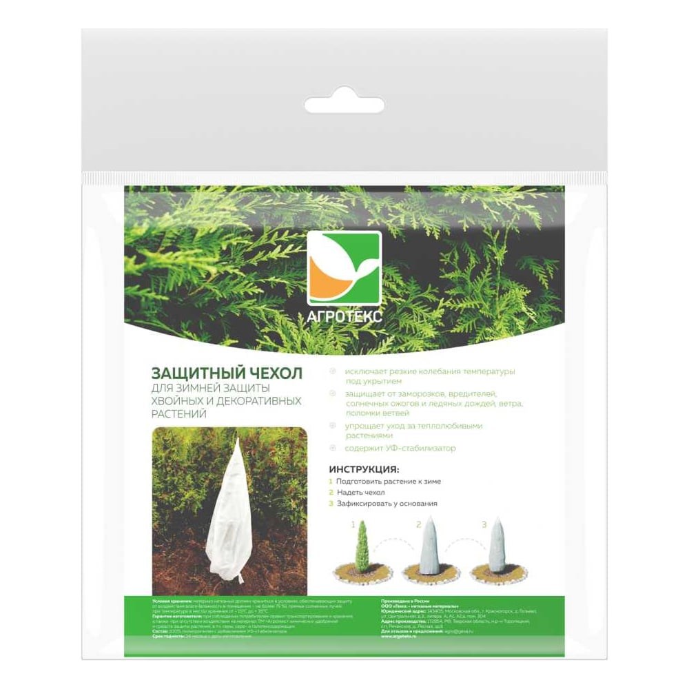 Оберегает от морозов, ожогов, перепадов температуры и грызунов. Применяется для зимней защиты декоративных растений, деревьев и кустарников. Помогает продлить естественный покой растений при ранних оттепелях. Защитный чехол изготовлен из плотного и дышащего нетканого материала, который обеспечивает оптимальные условия для зимовки теплолюбивых растений, защищает их от морозов, выпревания, перепадов температуры и солнечных ожогов. Чехол сохраняет естественный покой растений до весны и делает их менее уязвимыми перед грызунами.