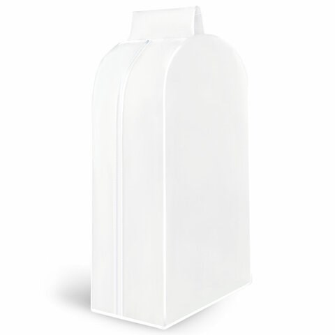 Чехол для одежды выполнен из высокопрочного полупрозрачного гипоаллергенного материала - полиэтиленвинилацетата (PEVA). Такой материал надежно защищает одежду и дает возможность легко найти нужные вещи. Полупрозрачный белый цвет идеально подойдет для любого гардероба и сделает его более эстетичным.
