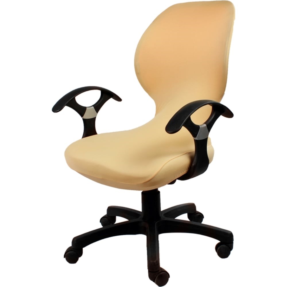 Чехол на мебель ГЕЛЕОС 726 для компьютерного кресла, стула, светло-коричневый ГЧ00726 защищает от пыли, шерсти и пятен. Благодаря эластичности легко натягивается и хорошо облегает кресло. За счет вшитой резинки надежно фиксируется. Чехол можно стирать в стиральной машине, поэтому он прослужит долгое время.