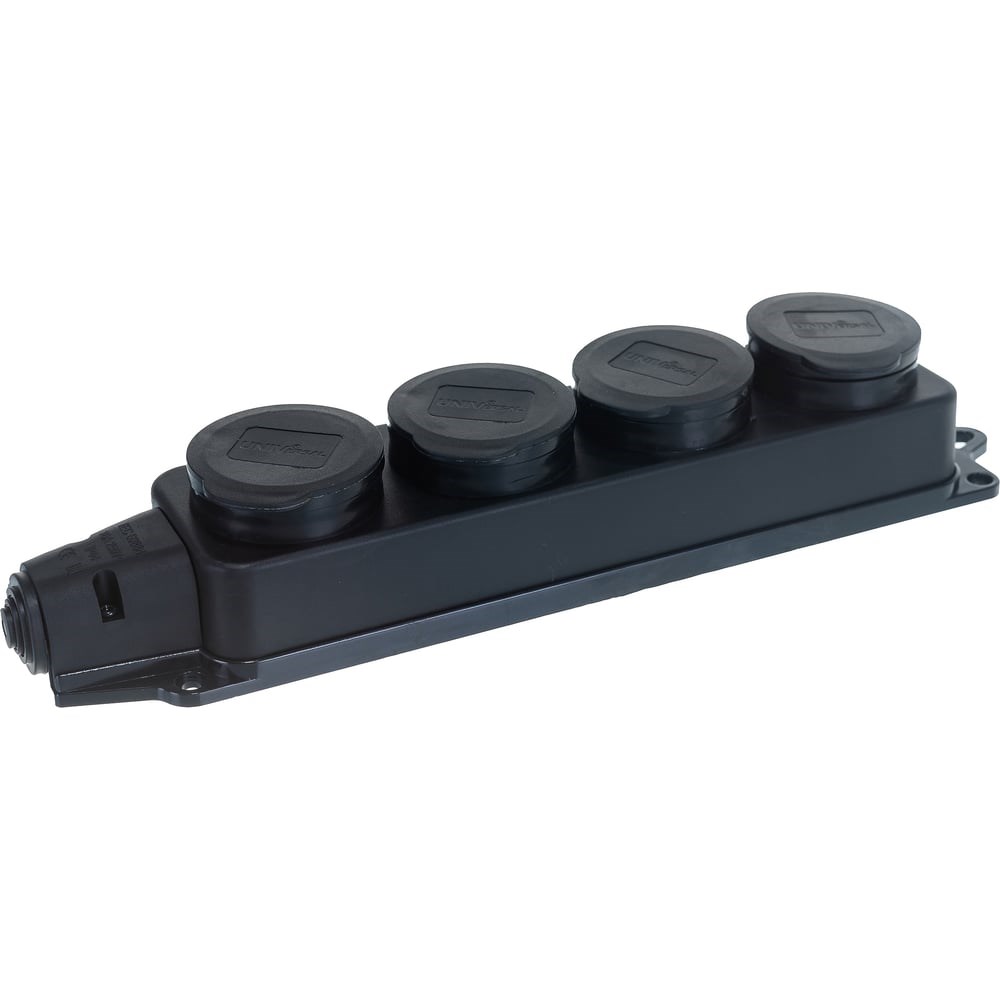 Однофазная 4-х местная колодка с заглушками, каучук UNIVersal 1029 - большая колодка с четырьмя розеточными гнездами, каждое из которых оснащено собственной защитной крышкой. Материалом колодки служит каучук. Изделие прекрасно подходит для мобильного и стационарного использования.