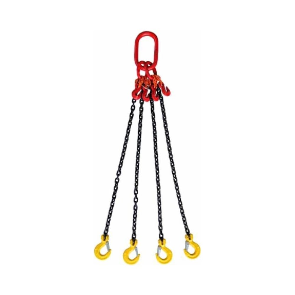 Цепной четырехветвевой строп представляет собой универсальное грузозахватное приспособление для подъема и перемещения грузов, состоящее из четырех цепей высокого класса прочности. Строп оснащен крюками с защелками для безопасной эксплуатации. Иногда цепной четырехветвевой строп обозначают как «паук цепной», также он соответствует марке «строп 4сц».Характеризуется мобильностью, компактностью, длительным сроком службы, гибкостью, долговечностью, может работать в агрессивных средах, при низких и высоких температурах, ремонтопригоден, а так же возможностью использования при различных способах строповки.Изготовлен в строгом соответствии с РД 10–33–93 с изм. РД 10–231–98 «Стропы грузовые общего назначения, требования к устройству и безопасной эксплуатации», а также европейскими стандартами EN 13414-1, EN 13414-2 и EN-13414-3.