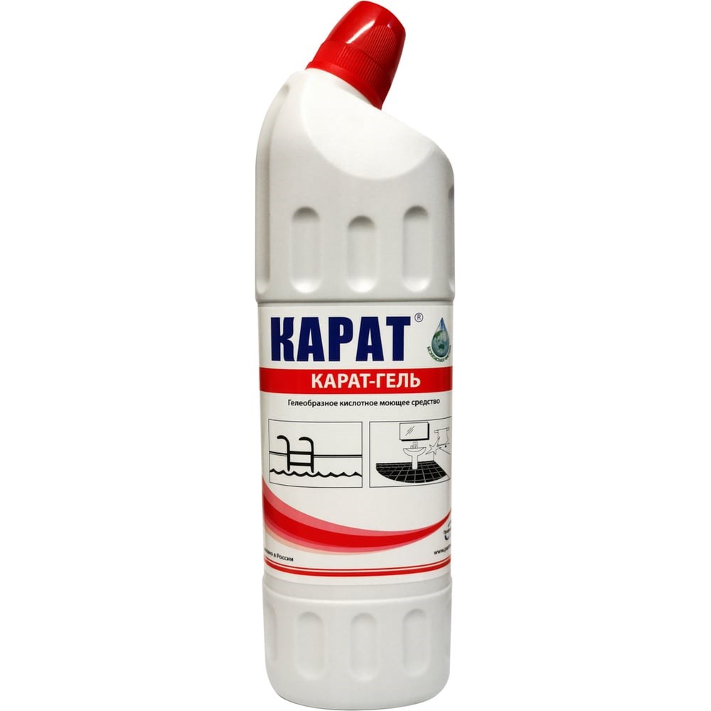 Профессиональное чистящее средство КАРАТ ГЕЛЬ для унитаза и сантехники эффективно удаляет известковый налет, водный и мочевой камень, ржавчину, мыльные разводы с раковины, ванной, душевой кабины, джакузи, унитаза, кафеля, фаянса и металла. Подходит для очистки бассейнов от минеральных отложений.Удобен в применении на вертикальных поверхностях. Безопасная чистота без лишних усилий.Важно: не использовать на оцинкованных, эмалированных и алюминиевых поверхностях.Способ примененияНанесите средство на загрязнённую поверхность и оставьте на 3-10 минут. Затем тщательно потрите и смойте водой. При необходимости процесс можно повторить.