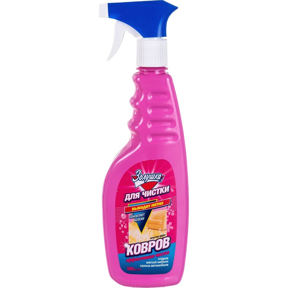 Средство для чистки ковров Золушка 500 мл триггер Ч-16-4Это мощное средство не только эффективно удаляет пятна и грязь, но и освежает, дезодорирует и возвращает яркость красок вашим коврам и обивке мягкой мебели.С его помощью вы сможете легко ухаживать за ковровыми покрытиями, обивкой мягкой мебели и даже салонами автомобилей. Инновационная формула проникает в волокна, не повреждая их структуру, а антистатическая обработка снимает электростатический заряд, препятствуя накоплению пыли.Удобный распылитель позволяет точно дозировать средство и легко обрабатывать даже самые труднодоступные места. Сделайте уборку легкой и приятной — просто распылите, протрите и наслаждайтесь результатом! Ваши ковры заслуживают лучшего ухода.