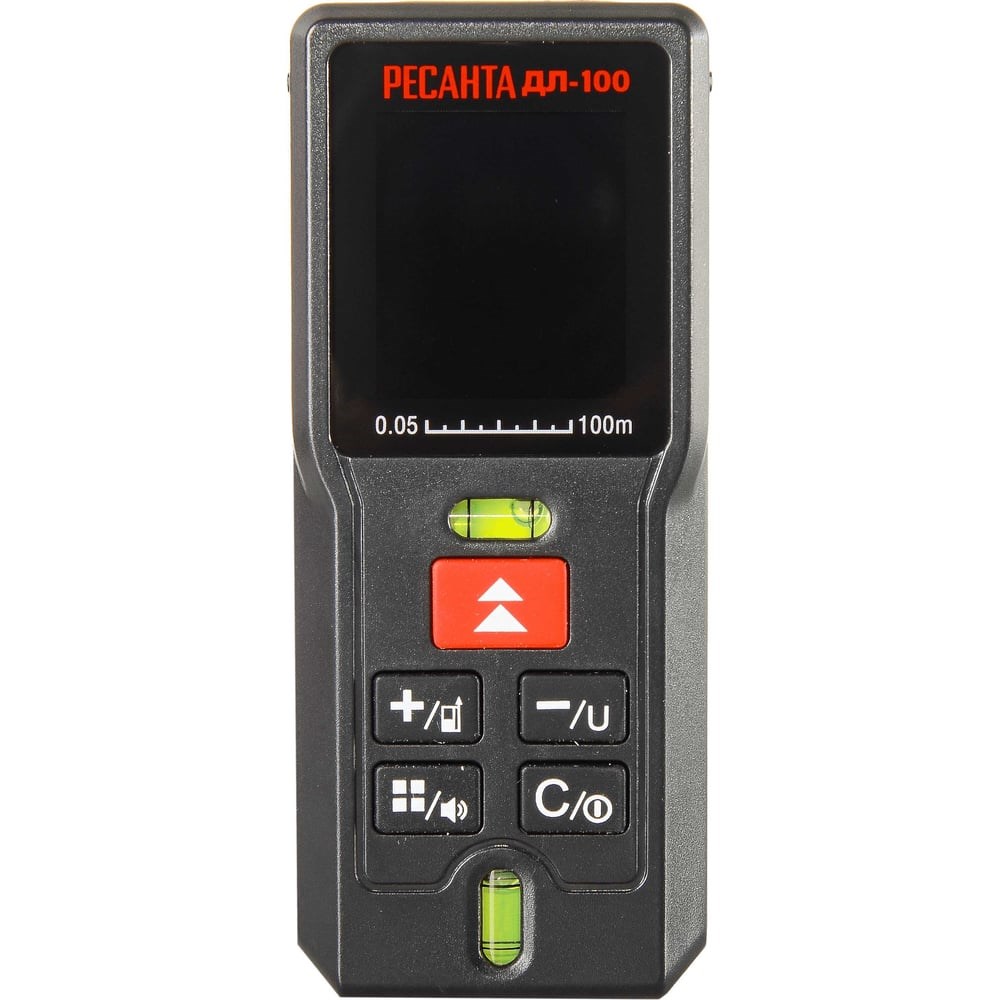 Цифровой лазерный дальномер Ресанта ДЛ-100 обеспечит качественное высокоточное измерение расстояний, произведение расчетов для выполнения различных строительных, ремонтных и других работ.Устройство позволяет производить замеры расстояния в одиночку без привлечения помощников. Измерения производятся с помощью лазерного луча в диапазоне 0,05-100 м с точностью до 2 мм. Угол наклона может быть любым. После включения устройство самостоятельно измеряет расстояние, может рассчитать объем или площадь помещения, выполнить сложение или вычитание. Встроенная память модели рассчитана на 20 значений. С помощью дальномера можно определить высоту здания, вычислить общую площадь комнаты, поверхности стен, длину уклона крыши, разметить отрезки равной длины на объекте. Лазерный дальномер работает от 2 обычных батареек ААА. При отсутствии дальнейших манипуляций лазерный луч отключается через 30 с, автоматическое выключение прибора осуществляется через 3 мин. Модель имеет подсветку дисплея, подходит для эксплуатации в темноте. Её можно использовать на улице при температуре воздуха от 0 до +45 градусов.Легкая, компактная, сверхточная модель Ресанта ДЛ-100 пригодится строителям, ремонтникам, туристам, работникам сельского хозяйства, дачникам и всем, кому нужно быстро произвести замеры без посторонней помощи.