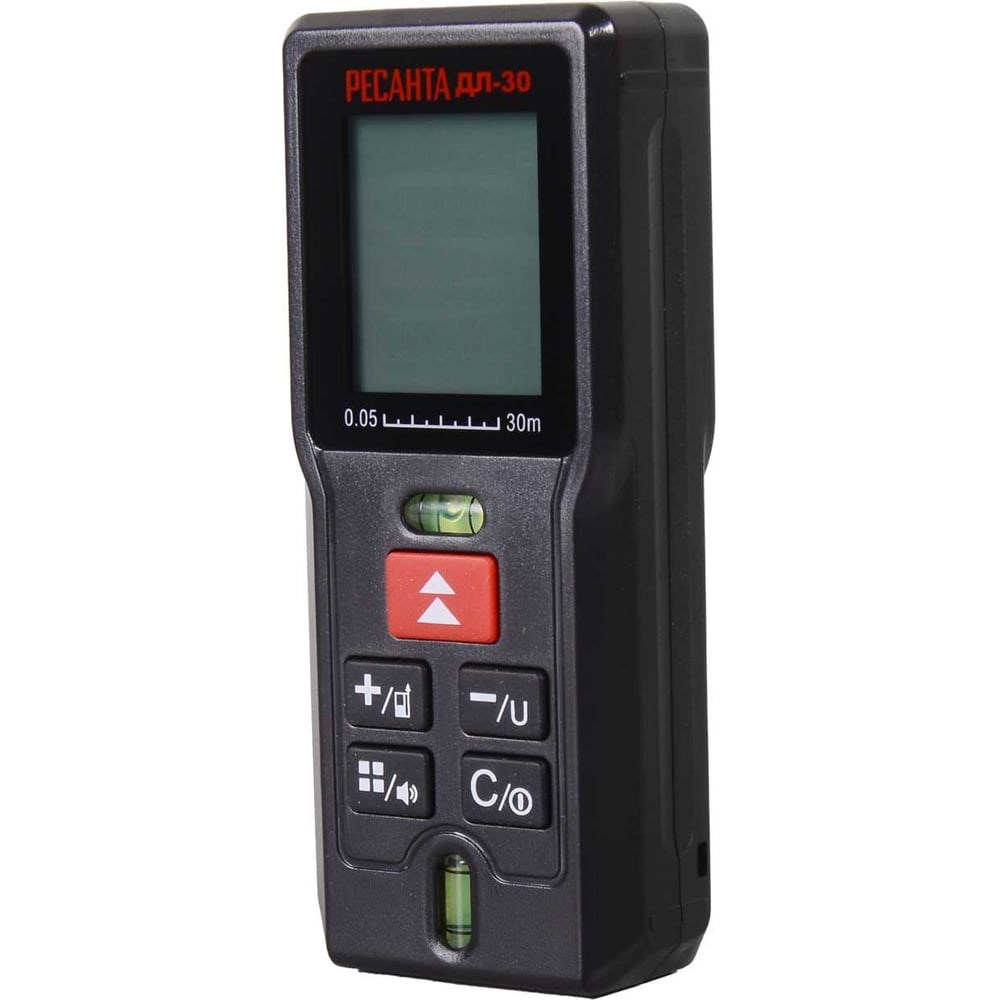 Проводить моментальные измерения расстояний без использования механической рулетки можно лазерным дальномером Ресанта ДЛ-30. Электронный инструмент позволяет проводить самостоятельные измерения в диапазоне от 0.05 до 30 м с точностью ±2 мм. С его помощью можно определять высоты зданий и сооружений, подсчитывать общую площадь стен помещений или их объём, выполнять сложения и вычитания, требуемые при возведении больших объектов, определять расстояния до объектов, измерять длины уклона крыш и т.д. Причём измерения можно проводить под любыми углами наклона и с тремя точками отсчёта. Лазерный дальномер безопасен и удобен в использовании. Модель Ресанта ДЛ-30 имеет встроенную память на 20 значений и функцию автоматического отключения при бездействии: лазера через 30 с, устройства – 3 мин. Есть подсветка дисплея и звуковая сигнализация замеров. Класс лазера – 2. Длина волны – 620-670 нм. Мощность лазера – <1МВт. Питание осуществляется от двух батареек ААА. Дальномер комплектуется удобной сумкой для переноски. Вес прибора 200 г. Рабочая температура при проведении замеров должна быть не ниже 0°С и не выше +45°С.