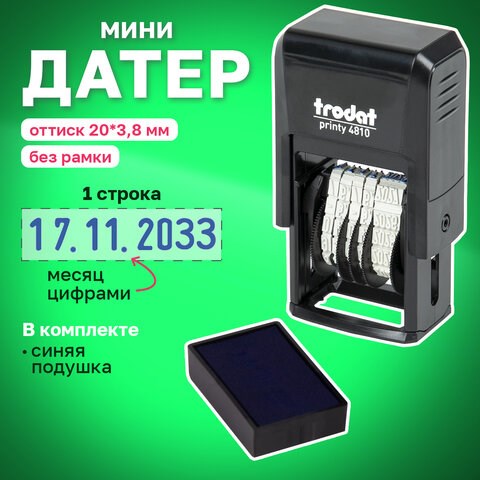 Датер-мини месяц цифрами, для банка, оттиск 20х3,8 мм, синий, TRODAT 4810 BANK, корпус черный