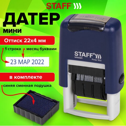 Датер-мини STAFF, месяц буквами, оттиск 22х4 мм, "Printer 7810", 237432