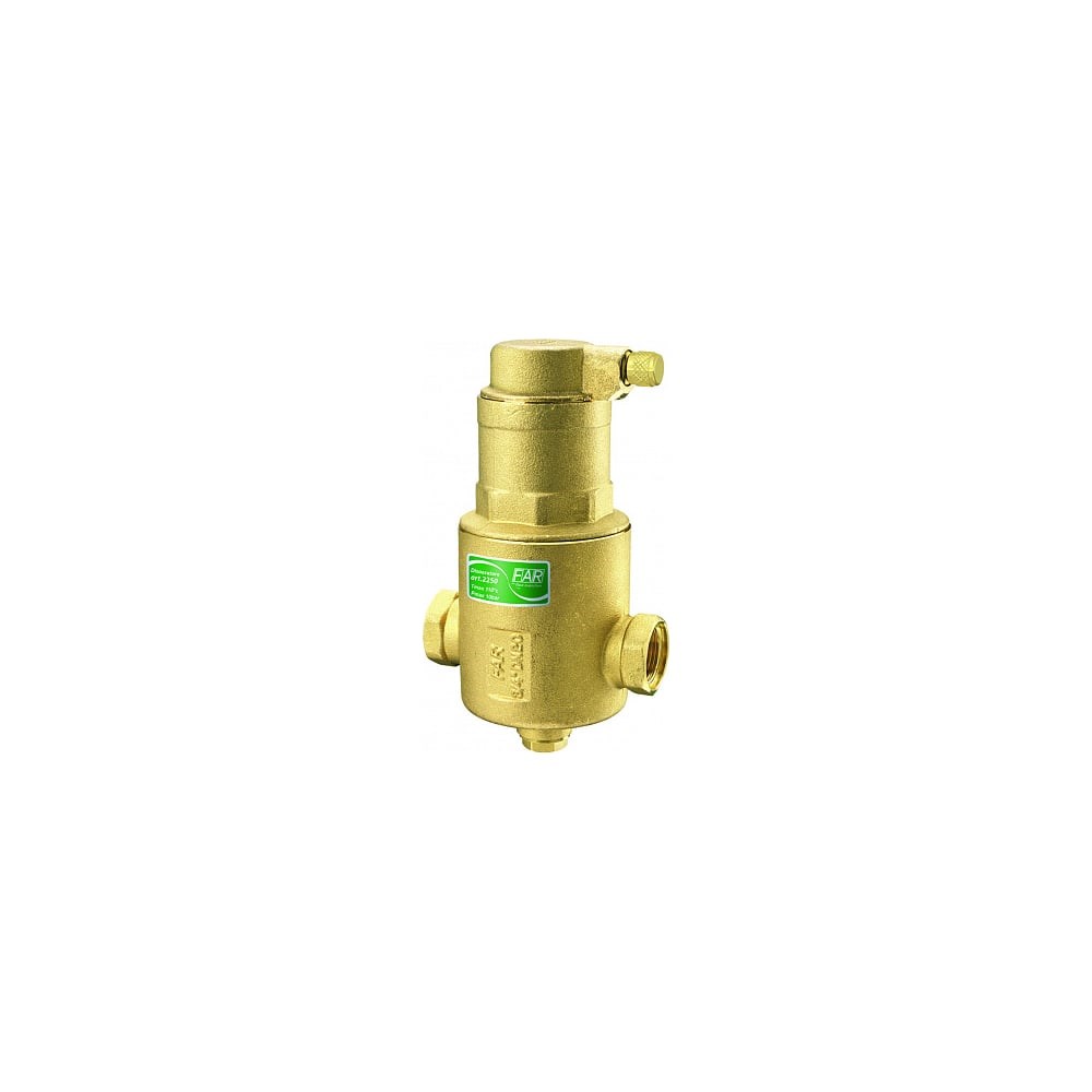 Деаэратор FAR 1-1/2" FA 2250 112 - специализированное устройство для удаления пузырьков воздуха в контурах отопления. Изделие изготовлено из латуни, отличается прочностью, надежностью и долговечностью в эксплуатации.В деаэраторе размещён специально разработанный и запатентованный фильтрующий картридж. Вертикальные составляющие картриджа, изготовленные из нейлона имеют многогранную поверхность, что увеличивает площадь соприкосновения стенок и пузырьков, турбулизирует поток и уменьшает скорость. В результате увеличивается эффективность отделения и отвода газов. Благодаря особенной конструкции картриджа отделение пузырьков происходит в результате столкновения со стержнями, а не в результате фильтрации. Поэтому гидравлическое сопротивление деаэратора FAR значительно меньше, чем у аналогов, работающих на картриджах с разными размерами ячеек фильтрующей сетки. В нижней части корпуса можно установить сливной кран.