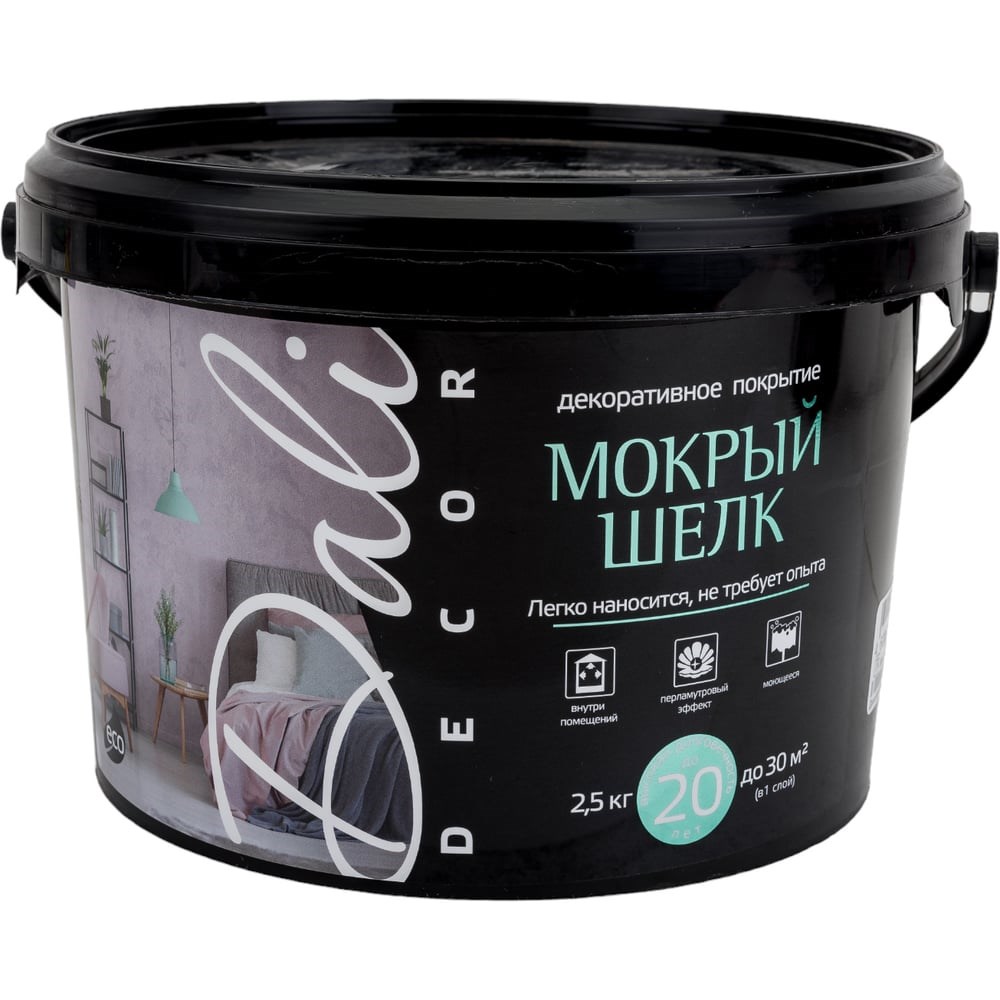 ШТУКАТУРКА ДЕКОР DALI-DECOR МОКРЫЙ ШЕЛК 2,5 КГ 51528 - защитно-декоративная обработка стен, потолков и различных элементов интерьера в отапливаемых и неотапливаемых жилых и общественных помещениях, в том числе с повышенной влажностью воздуха и интенсивной эксплуатационной нагрузкой. Область применения: Применяется внутри помещений, по тщательно выровненным минеральным (бетон, кирпич, гипс, цемент, гипсокартон, шпатлевка, штукатурка и т.д.) и другим (ДВП, ДСП, МДФ и т.д.) поверхностям Класс пожарной опасности КМ 1 Разрешена для обработки путей эвакуации. Разрешена к применению в детских, дошкольных, лечебных и общеобразовательных учреждениях. Расход в 1 слой: 1кг на 10-12 м²