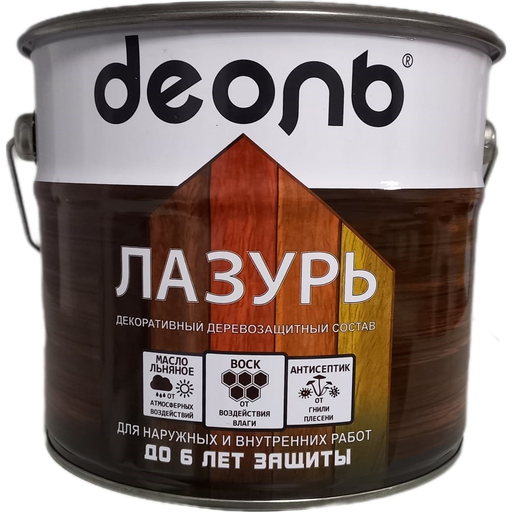 Декоративный деревозащитный состав (лазурь) ДЕОЛЬ Орех полуглянцевый 2,7 л DZSN27 предназначен обработки деревянных поверхностей. Благодаря составу, продукт образует покрытие стойкое к неблагоприятным воздействиям окружающей среды и биологическим повреждениям. Для эффективной защиты рекомендуют использовать лазурь в 2 слоя. Время высыхания однослойного покрытия 6-7 часов, повторный слой наносят через 12 часов. Полное высыхание средства через 24 часа. Применяется для наружных и внутренних работ.