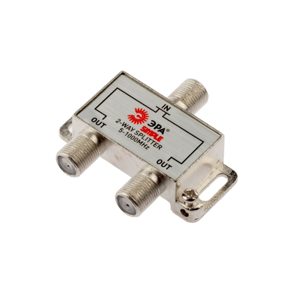 Дополнительные технические характеристики делителя ЭРА ТВ Simple DSF01 2 ответвления под F разъем, 5-1000 МГц Б0048320: Количество входов - 1. Количество выходов - 2. Способ подключения - F-разъем.