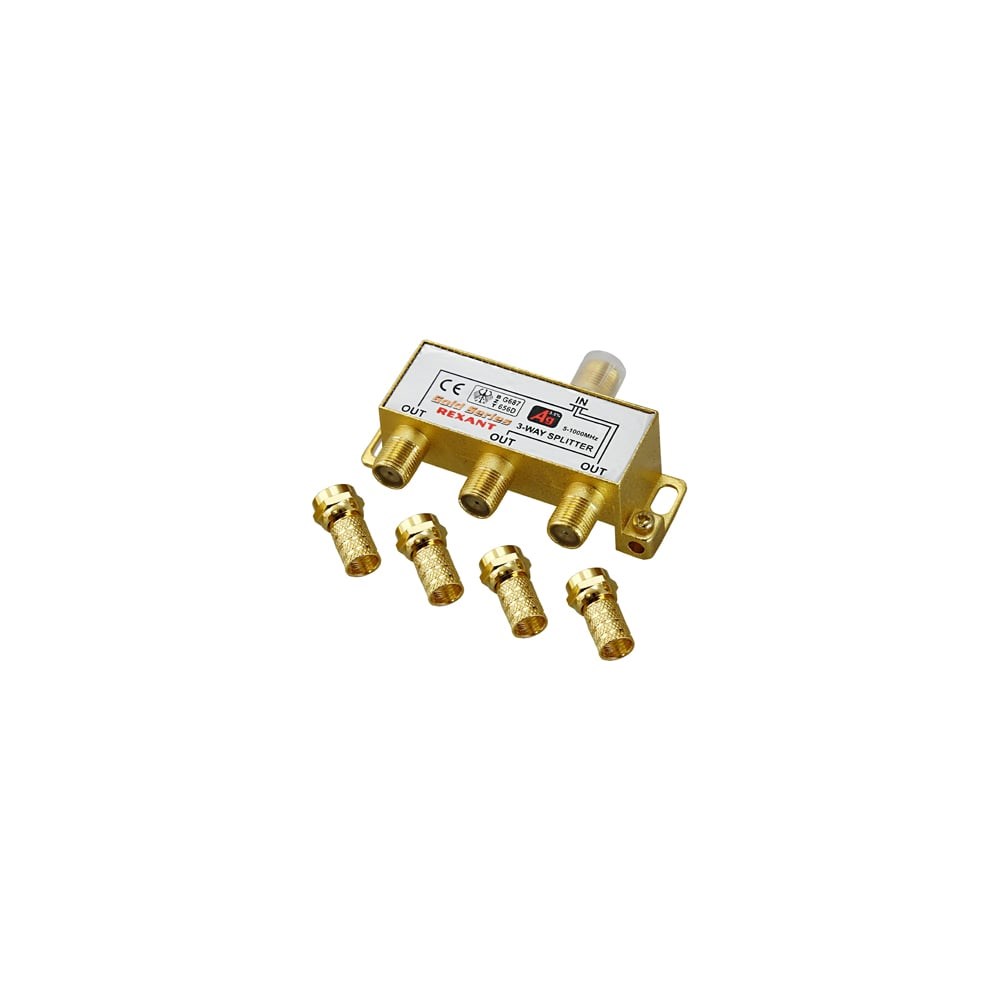 Телевизионный делитель или сплиттер предназначен для телевизионных систем и используется в домах и квартирах, где требуется подключить несколько телевизоров к одной антенне. Сплиттер распределяет поступающий на вход сигнал поровну на его выходы, что обеспечивает одинаково четкое изображение на всех подключенных устройствах. Устройство оснащено тремя выходами для сигнала и подключается с помощью стандартных F-разъемов. В комплекте поставляется 4 F-разъема. Пайка внутри делителя осуществляется с использованием золотосодержащего припоя, что позволяет получить сигнал высокого качества и увеличить надежность. Данный делитель подходит для сигналов с частотой 5-1000 МГц, что соответствует стандартному эфирному телевидению.