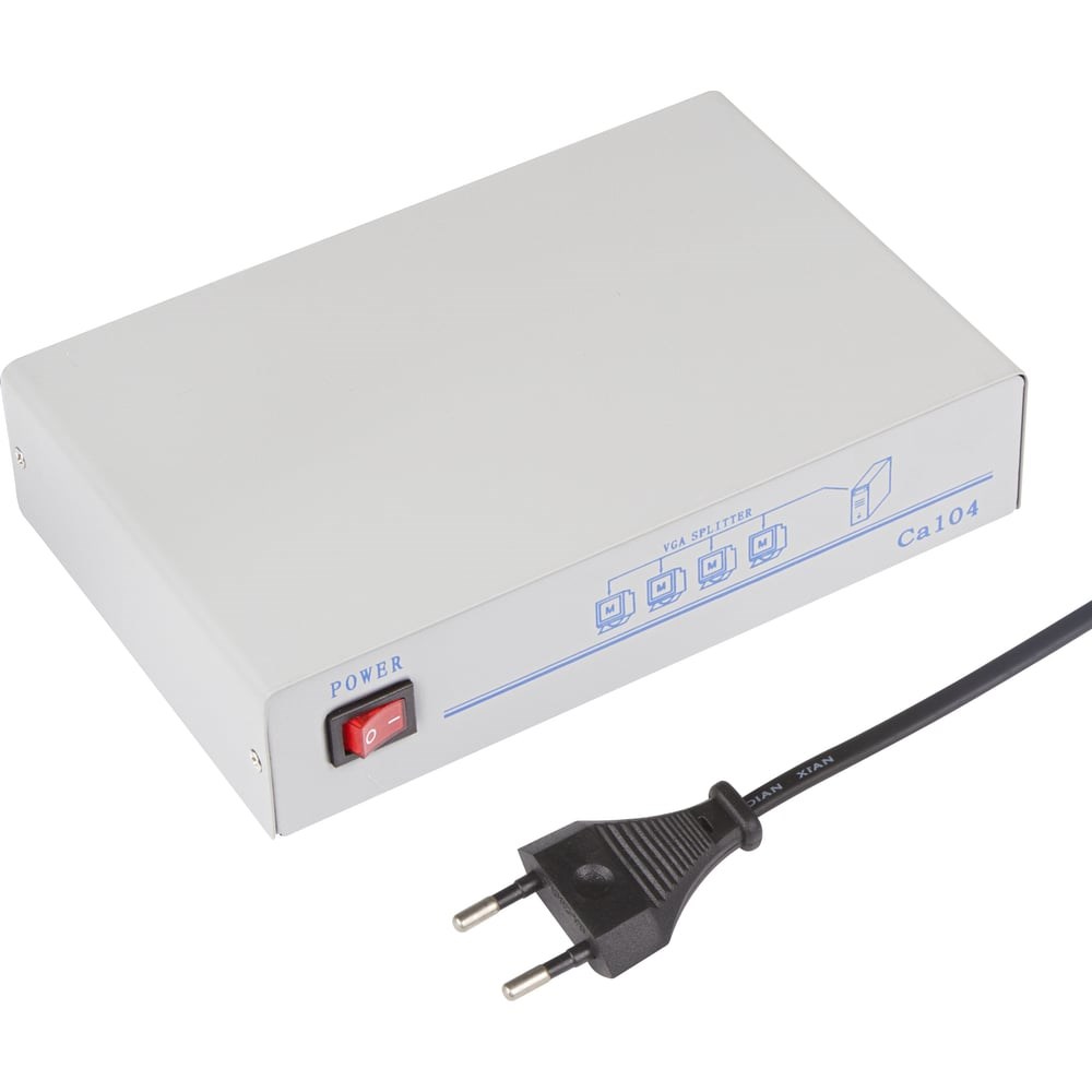 VGA делитель 1x4 REXANT – это удобное средство для разделения сигнала на несколько равных частей. Устройство позволяет разделить видео сигнал с источника VGA четыре устройства, например, на ЖК телевизоры и мониторы. Каждый выход разветвителя оснащен усилителем, что позволяет подключать к нему кабели большой длины. При этом Full HD изображение передается без потерь в качестве. Сплиттер прост в установке и удобен в использовании, оптимально подходит для демонстрации ЖК-панелей в магазинах, а также для инсталляций с несколькими экранами. Изделие питается от сети. Инструкция поставляется в комплекте.