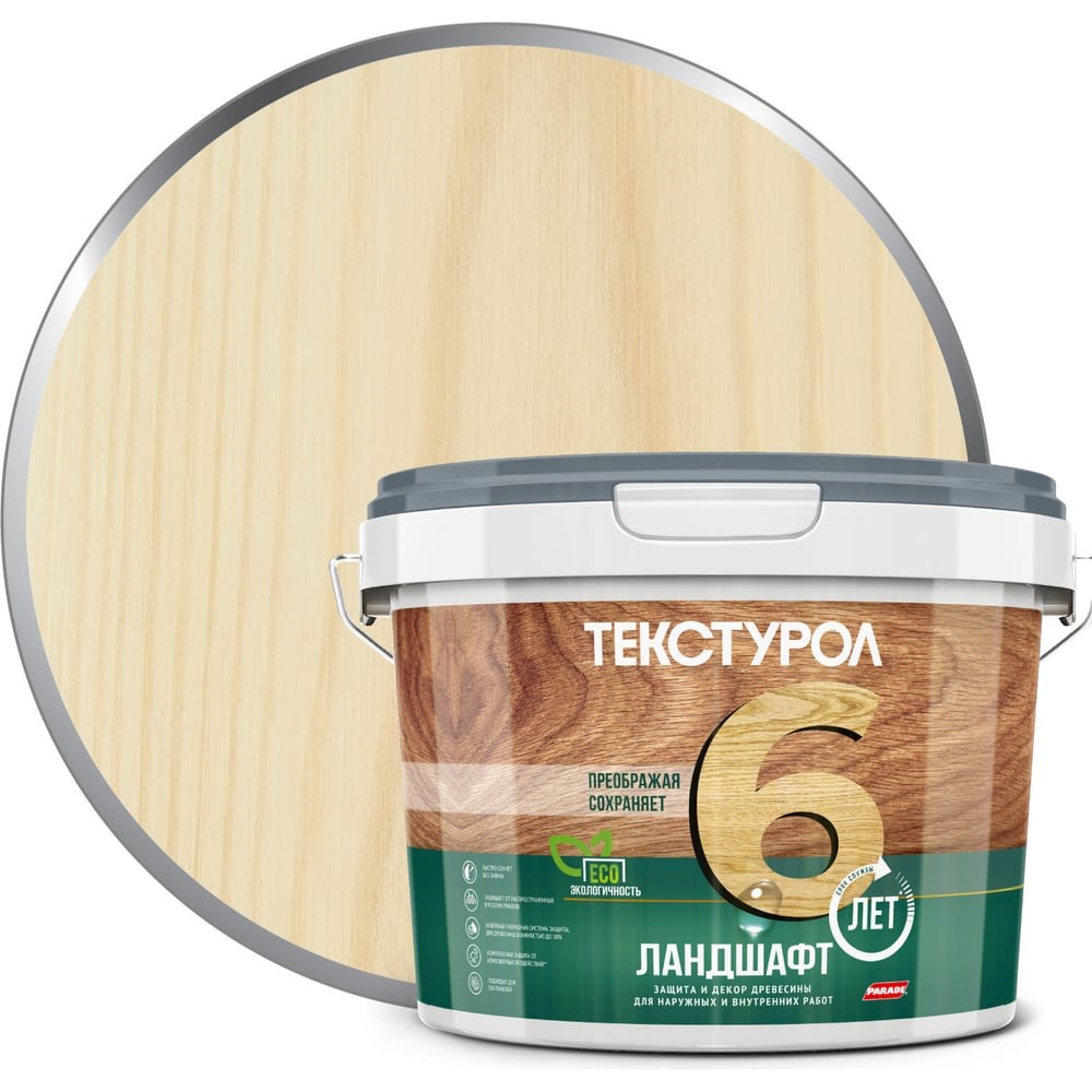 Деревозащитное средство на водной основе Текстурол Ландшафт ясень 2,5л Лк-00003718 используют внутри и снаружи помещений для финишной обработки фасадов и конструкций из ДВП, ДСП, фанеры и шпона (стеновые панели, оконные и дверные проемы, заборы и ограды). Продукт создает на поверхности дышащую шелковисто-матовую пленку с водо- и грязеотталкивающими свойствами, устойчивостью к ультрафиолету и атмосферному воздействию. Тиксотропный состав не разбрызгивается и не образует подтеков при вертикальном нанесении. Противогрибковые добавки препятствуют развитию микроорганизмов, гниению и дальнейшему разрушению древесины.