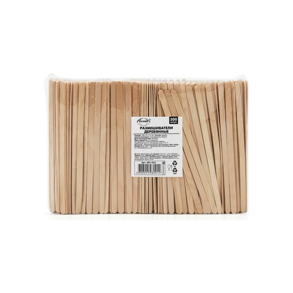 Размешиватели для напитков AVIORA деревянные, 140x6х1.3 мм, 500 шт/уп 401-923 подходят для перемешивания чая, кофе и других горячих напитков. Используются в кафе, ресторанах, фастфуде, а также других точках общественного питания и службах доставки еды.