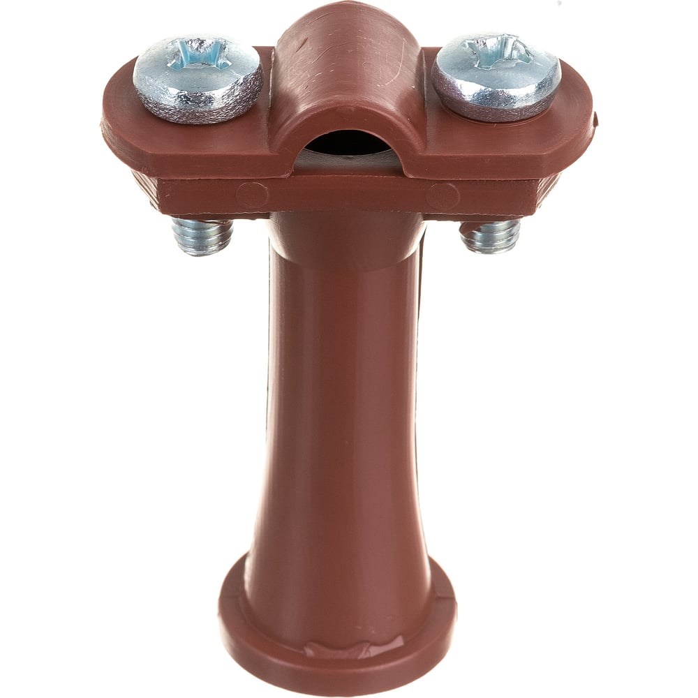 Держатель круглого проводника EZETEK 6-10мм коричневый, высота 59мм, пластик 91103 выполнен из пластика коричневого цвета. Он позволяет закреплять пруток молниезащитной сетки диаметром 6-10 мм. Пруток возможно зафиксировать на кровле и на фасаде здания. Расстояние от прутка до основания держателя составляет 59 мм. В основании держателя имеется отверстие с резьбой М8 для крепления при помощи шпильки, а также винта (самореза). Пруток закрепляется при помощи винтов М6.