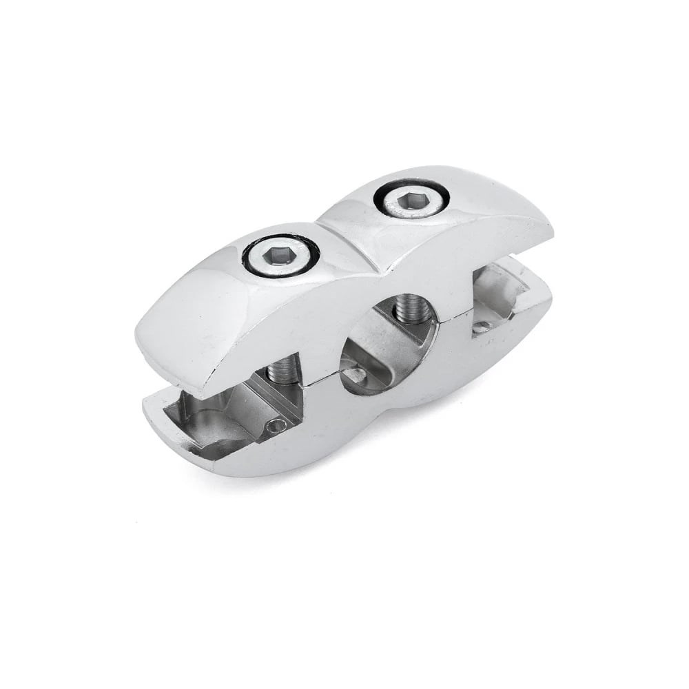 Двусторонний держатель панелей с креплением под трубу Ø25 мм (система «Джокер»). В качестве панелей подойдут ДСП, решетка, экономпанели, стекло, пластик и др. Для элементов тоньше 14 мм используйте пластиковые вставки (вкладыши). Важно: обе панели должны быть одинаковой толщины. Это нужно для надежности зажима, чтобы держатель не сползал по стойке. Тип: крепеж на трубу с панелями двухсторонний. Способ крепления панели: горизонтальный. Диаметр под трубу: 25 мм. Максимальная толщина ДСП: 20 мм. В комплекте 1 шт. Применение: сборка каркасов торгового, демонстрационного оборудования – витрин, павильонов, павильонов, стендов, перегородок и т. д. Материал: алюминиевый сплав Покрытие: хром