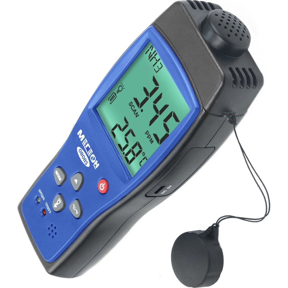 Детектор аммиака МЕГЕОН 08085 позволяет замерить концентрацию аммиака в различных помещениях и сооружениях. Отличается высокой чувствительностью и низкой погрешностью (±2%). Прибор имеет два настраиваемых уровня тревоги. Экран с подсветкой облегчает считывание данных при слабом внешнем освещении. Перезаряжаемый Li-Ро аккумулятор обеспечивает продолжительную работу на одном заряде.