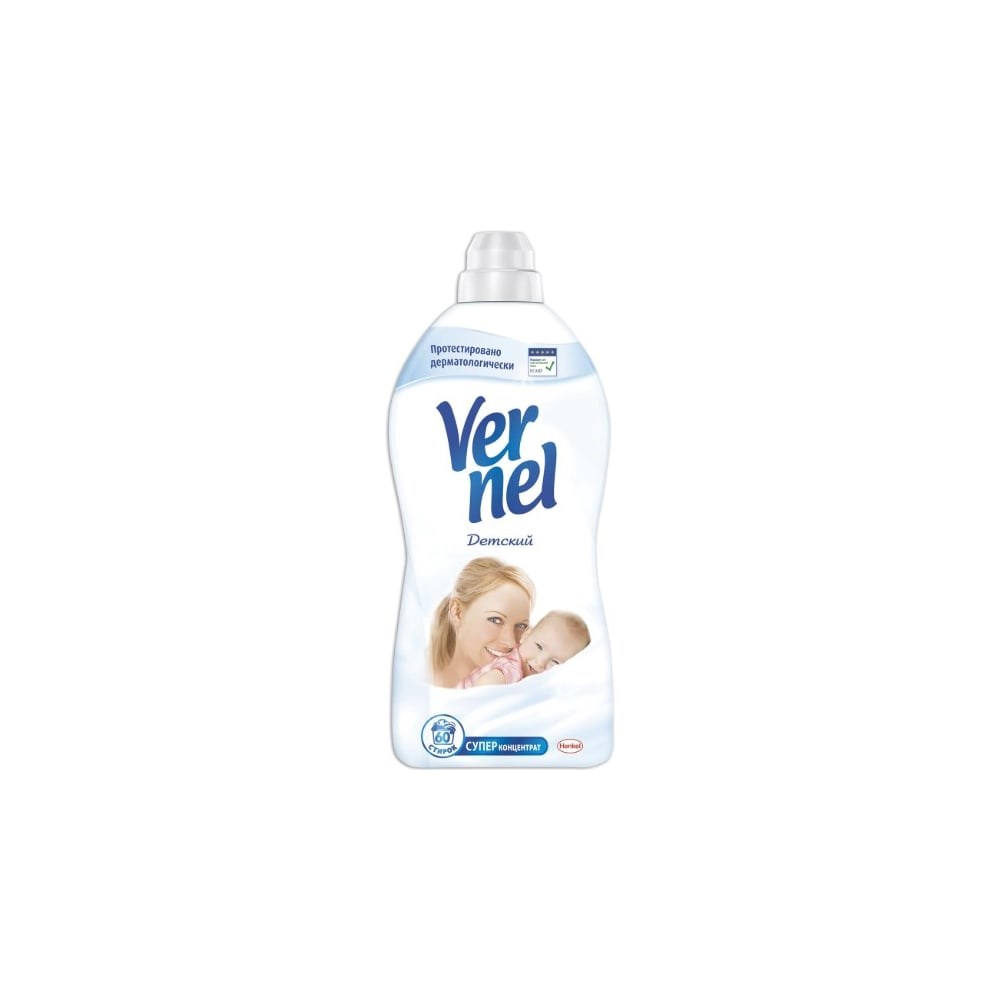 Кондиционер-ополаскиватель для белья VERNEL Детский 1.82 л 2202906 606054 придает вещам мягкость и приятный аромат. При регулярном использовании облегчает процесс глажки и ускоряет высыхание, снимает статическое электричество. Кондиционер не содержит красителей, дерматологически протестирован.