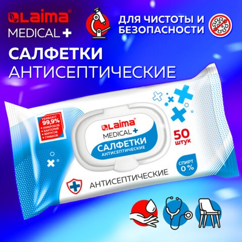 Дезинфицирующие салфетки бесспиртовые, для рук и любых поверхностей, 50 шт., LAIMA MEDICAL, 608764