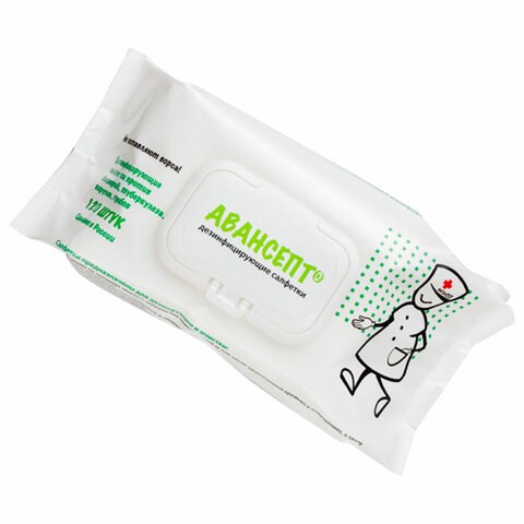 Дезинфицирующие салфетки спиртовые 120 шт., АВАНСЕПТ, для обработки рук и поверхностей, клапан-крышка