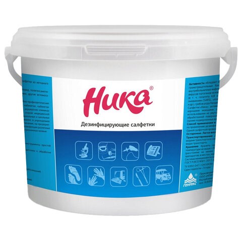 Дезинфицирующие салфетки влажные 300 шт. НИКА, для обработки рук и поверхностей, ведро
