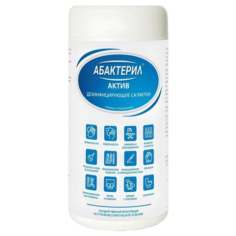 Дезинфицирующие салфетки спиртовые 60 шт., АБАКТЕРИЛ-АКТИВ, для обработки рук и поверхностей, САЛ-В-03