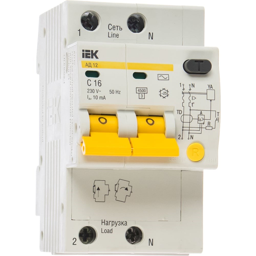 Дифференциальный автомат IEK АД-12 2п, 16А, C, 10мА