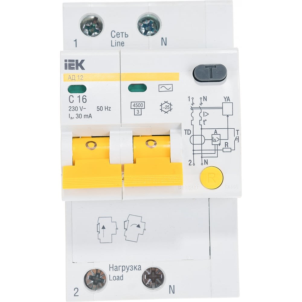 Дифференциальный автомат IEK АД-12 2п, C, 16А, 30мА