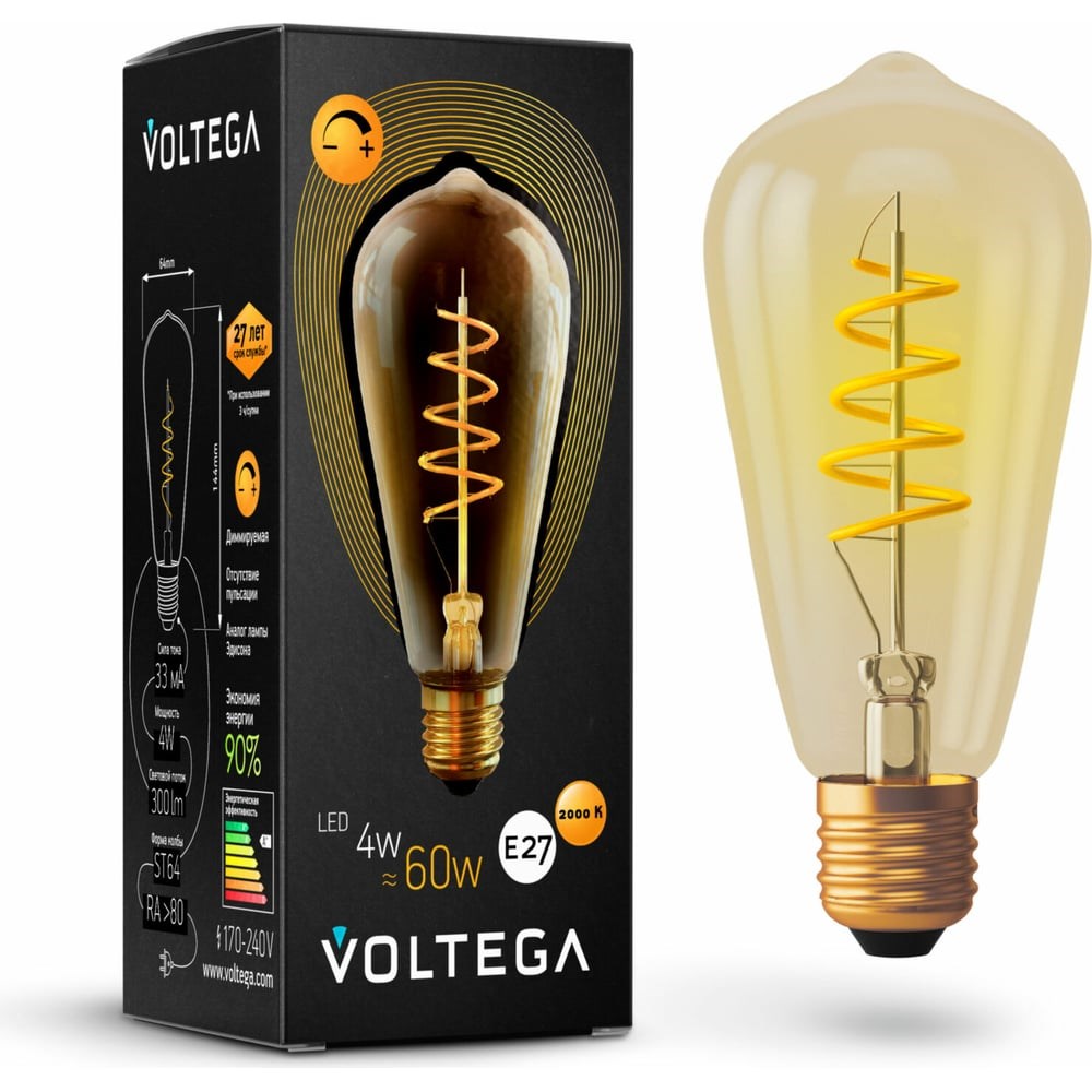 Светодиодная лампа VOLTEGA Колба ST64 диммируемая GOLD E27 4W 2000K 7077