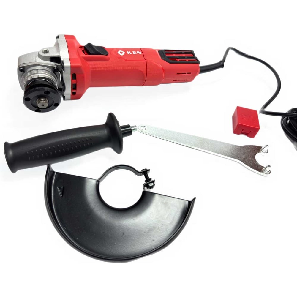 Угловая шлифовальная машинка УШМ (болгарка) 9825 KEN с максимальным диаметром алмазного диска 125 мм, мощностью двигателя 820 Вт, номинальным напряжением 220В и максимальной скоростью вращения диска 11000 об/мин.