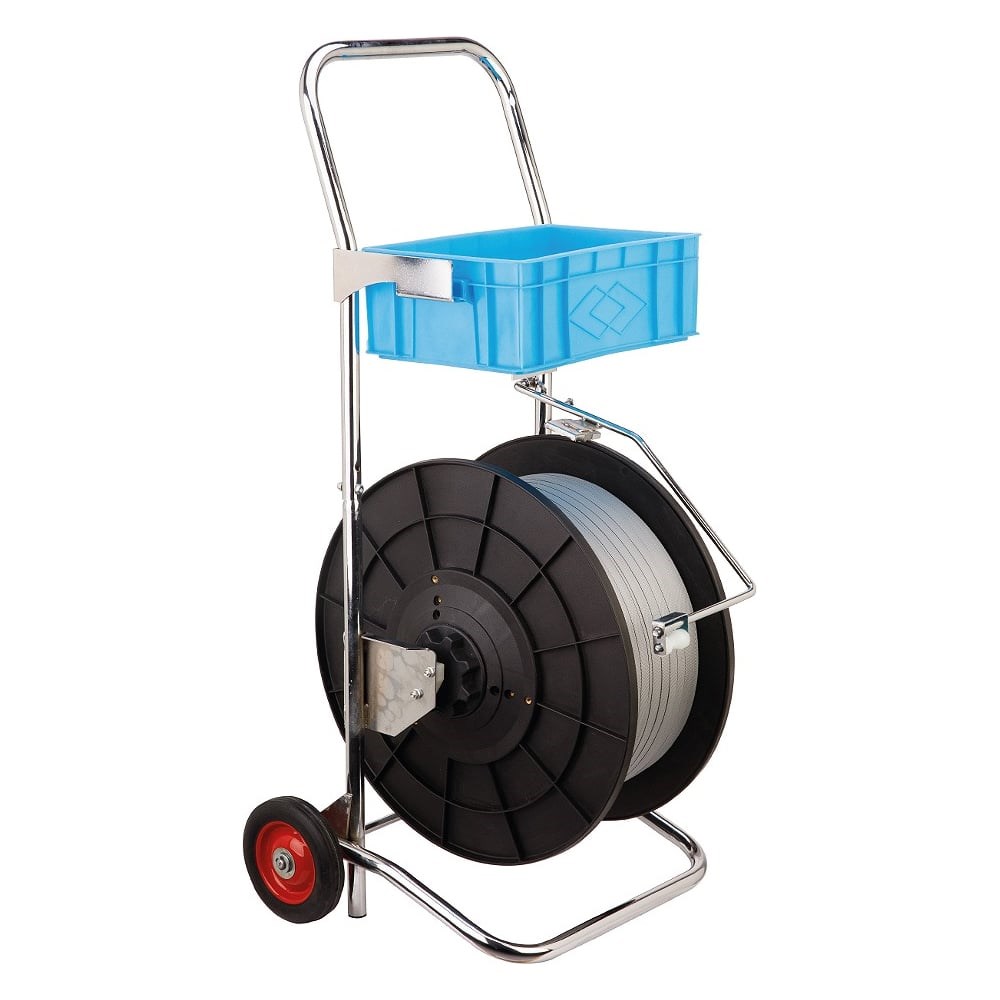 Диспенсер размотчик для полипропиленовой ленты ВОЛГА ПОЛИМЕР P20/28 Т081103 заметно упростит упаковку ПП лентой шириной от 9 мм до 19 мм, толщиной от 0,5 мм до 1,5 мм. Поможет избавиться от запутывания бобины. Ленторазмотчик передвижного типа с местом посадки для бухты стреппинг ленты и ящиком для инструмента и крепежей (пряжки, скобы), колеса из резины, ручка для удобной транспортировки.С помощью диспенсера можно быстро разматывать ленту и перевозить бухту с обвязкой по территории склада. Ленторазматыватель подходит для бухт полипропиленовой ленты с внутренним диаметром 280 мм, 230 мм или 200 мм, с внешней не более 500 мм, шириной в пределах 200 мм. Размотчик упаковочной ленты оснащен резиновыми колесами.За счёт мобильности устройства и скорости размотки ленты, уменьшается затраченное время на обвязку. Простота механизмов и легкость работы при упаковке продукции делают ленторазматыватель незаменимой вещью на любом производственном складе.