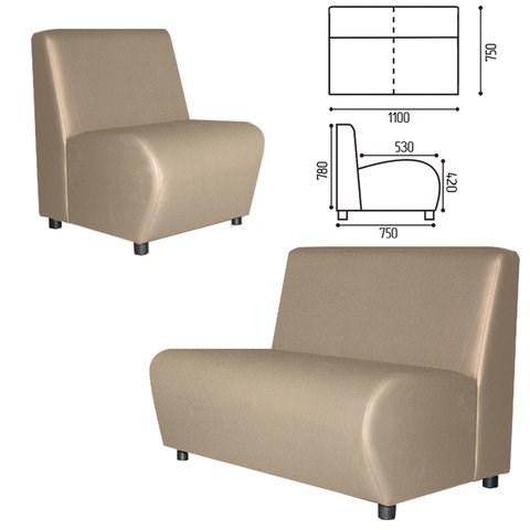 Диван мягкий двухместный "Клауд", "V-600", 1100х750х780 мм, без подлокотников, экокожа, бежевый