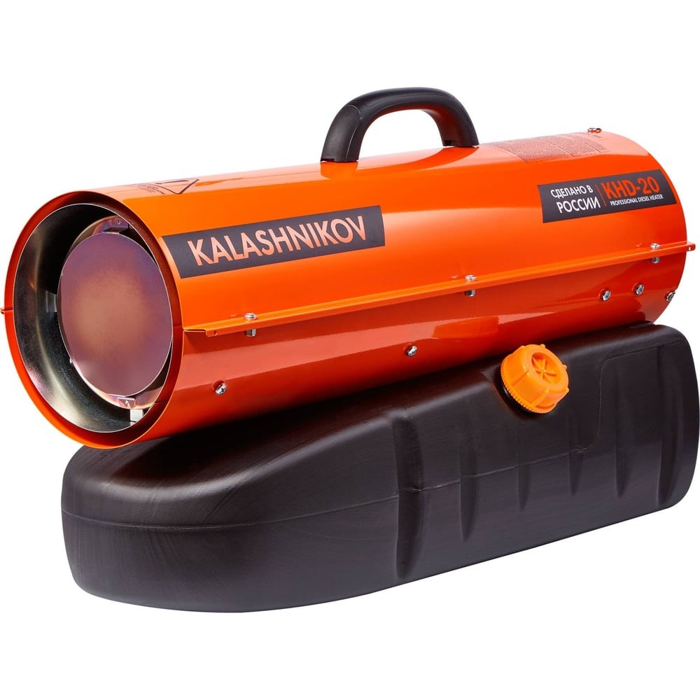 Дизельная пушка прямого нагрева KalashnikovKHD-20 НС-1432366 – это мощный обогреватель, работающий на дизельном топливе. Предназначена для обогрева нежилых помещений и локального прогрева рабочих поверхностей. Высокий уровень КПД прибора близок к 100%, а тепловая мощность 20 кВт, производимая тепловой пушкой – вполне достаточна для использования устройства в качестве мощного генератора тепла. Воздушный поток при помощи вентилятора втягивается внутрь корпуса через защитную решётку в основании пушки и проходит через камеру сгорания, где смешивается с распылённым под высоким давлением дизельным топливом, подающимся из топливного бака в форсунку. В камере сгорания воздушно- топливная смесь поджигается при помощи трансформаторной системы розжига с высокопроизводительными 12 кV электродами, и выбрасывается в обогреваемое помещение вместе с продуктами сгорания. Теплоотражающий стальной экран в передней торцевой части корпуса задерживает открытое пламя и не даёт ему вырываться наружу, тем самым обеспечивая равномерный нагрев помещения, либо рабочей поверхности. Встроенный в генератор тепла KALASHNIKOV KHD-20 термостат повышенной чувствительности с удобной и понятной регулировкой позволяет использовать устройство в автономном режиме, автоматически поддерживая заданную для работы температуру.