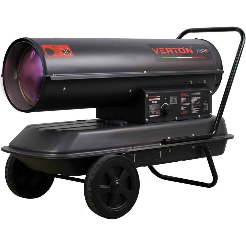 Дизельная пушка VERTON Air DH-50 48кВт, 980м3/ч., 3,2л/ч, 01.5985.6759 предназначена для обогрева нежилых помещений, гаражей, строительных площадок, значительных площадей складского и производственного назначения с хорошей вентиляцией, при размораживании тепловых магистралей и прогреве автомобиля в сильный мороз. Модель рассчитана на длительную непрерывную работу с высокой производительностью, надежностью и безопасностью использования.
