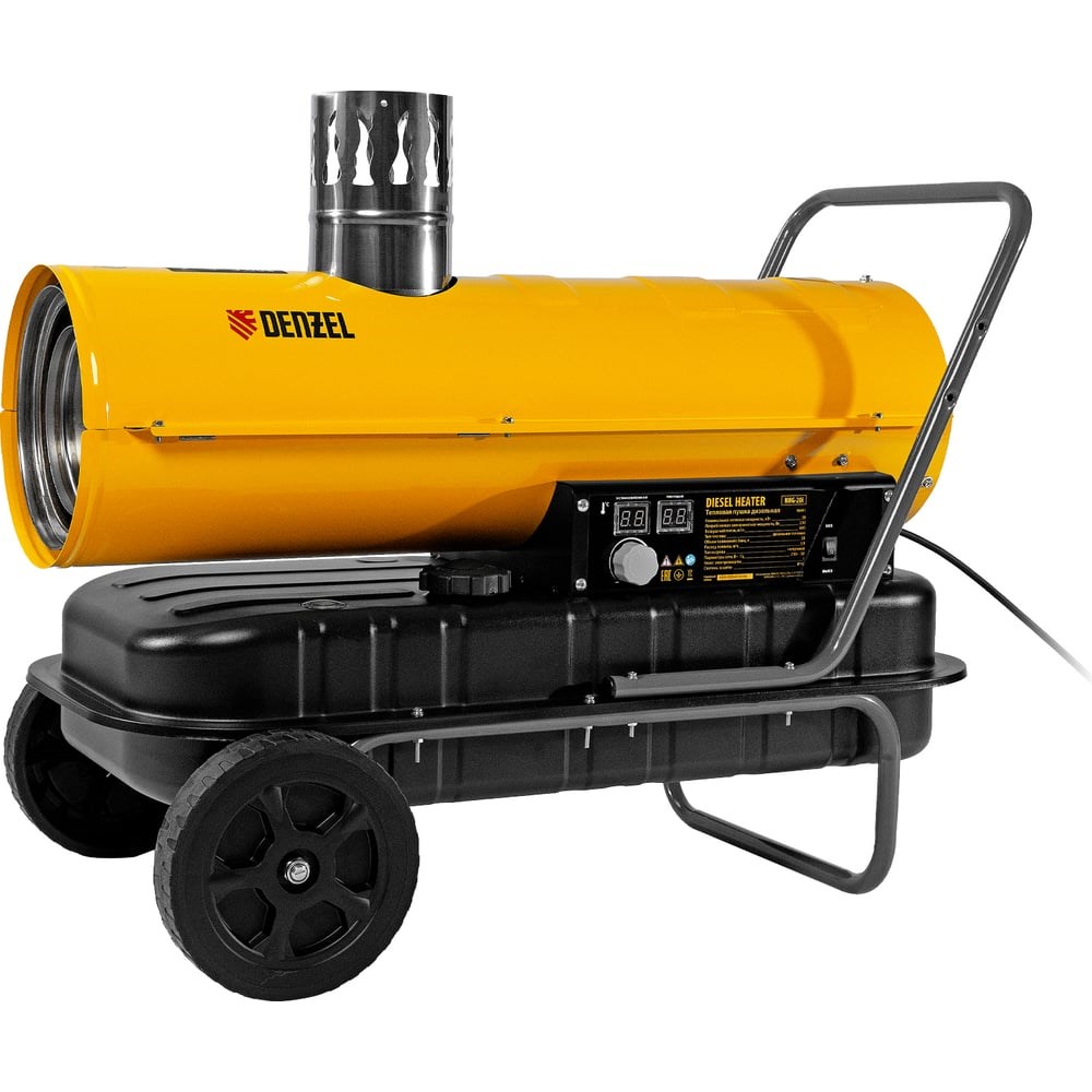 Дизельная тепловая пушка непрямого нагрева DENZEL NHG-20i 96491 с цифровым термостатом обладает тепловой мощностью 20 кВт и генерирует поток теплого воздуха 600 м3/ч. Предназначена для обогрева шатров, палаток, складов, а также технических помещений, ангаров, теплиц и строительных объектов. В работе пушки используется схема непрямого нагрева: при помощи отводного патрубка продукты горения можно полностью вывести за пределы помещения. Такое решение позволяет использовать устройство в присутствии людей.