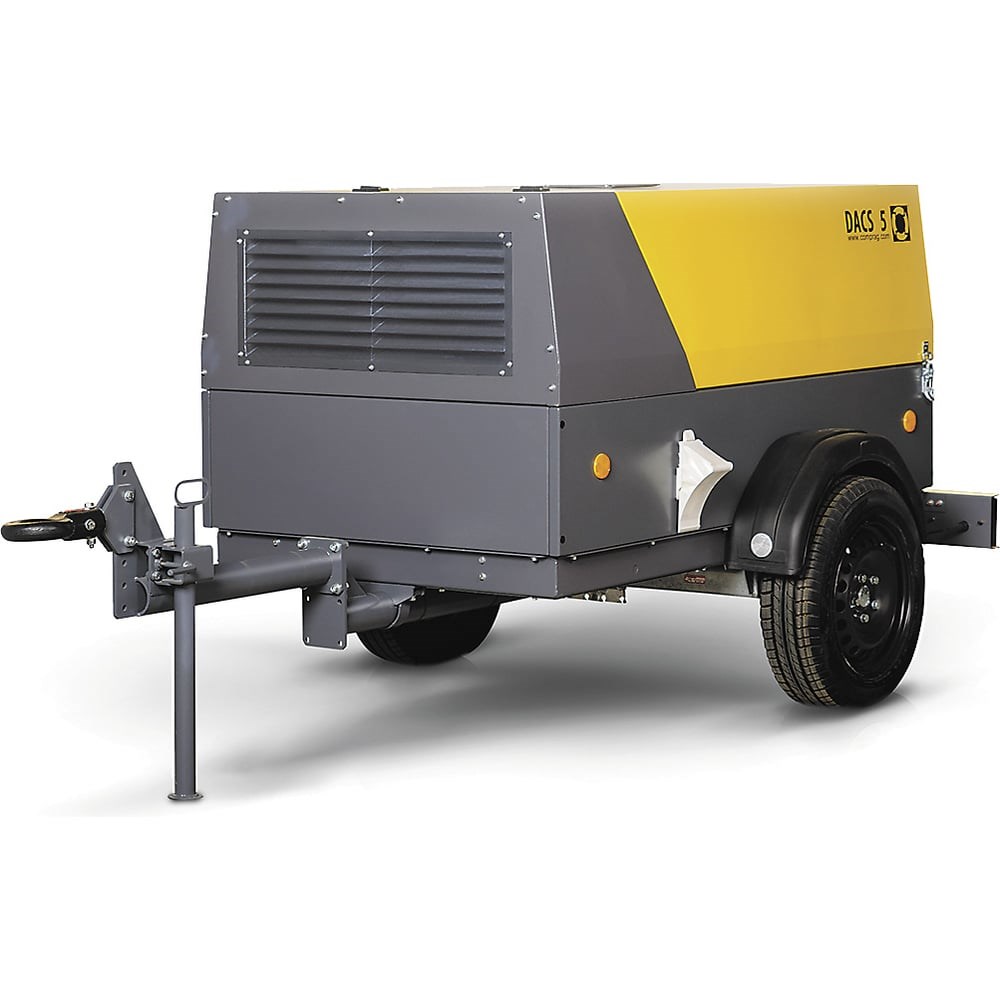 Дизельный компрессор COMPRAG DACS-5 на шасси 11130500 представляет собой передвижную модель с дизельным приводом. Предназначен для проведения дорожных, ремонтных и строительных работ. Производительность компрессора достаточна для подключения 3-х пневматических бетоноломов средней массы или 2-х бетоноломов и пневматического водяного насоса. Поставляется на двухколесном шасси с дышлом со сцепным кольцом. Внимание! Данный товар требует сборки и наладки, для этого рекомендуем на коммерческой основе обратиться к официальному дилеру (список официальных дилеров есть на сайте производителя COMPRAG).