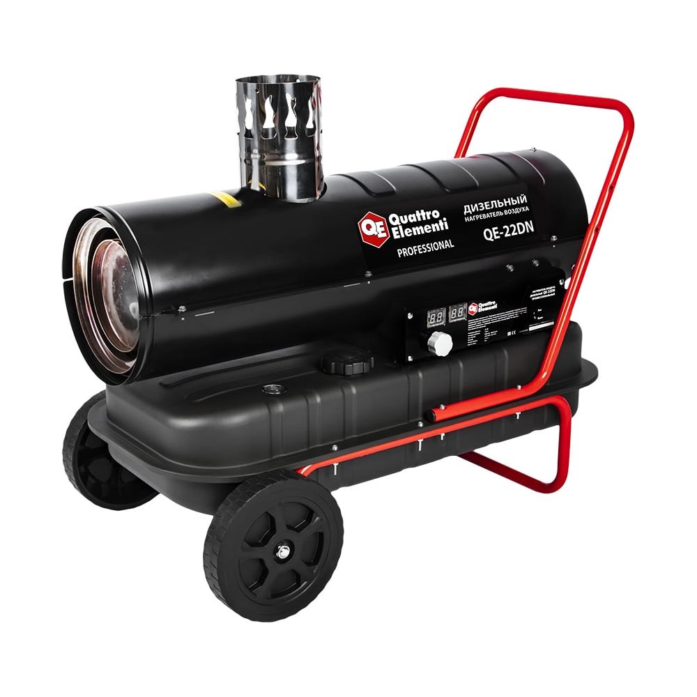 Нагреватель воздуха QUATTRO ELEMENTI дизельный QE-22DN 22кВт 792-605 предназначен для обогрева закрытых помещений складского, торгового и промышленного назначения. Принцип действия основан на прохождении воздушного потока через нагревательный элемент, использующий энергию сгорания дизельного топлива. Является прибором и непрямого нагрева, в котором есть камера сгорания закрытого типа и дымоход.