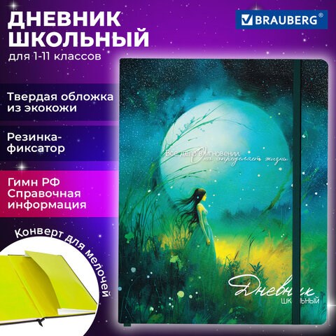 Дневник 1-11 класс 48 л., кожзам (твердая с поролоном), печать, резинка, конверт, BRAUBERG, "Мечты", 106949