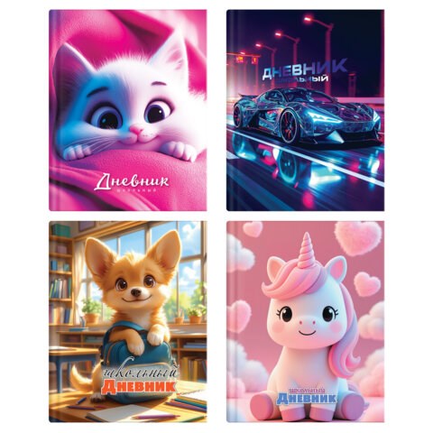 Дневник 1-4 класс 48 л., твердый, ЮНЛАНДИЯ, глянцевая ламинация, с подсказом, "МИКС", 107580