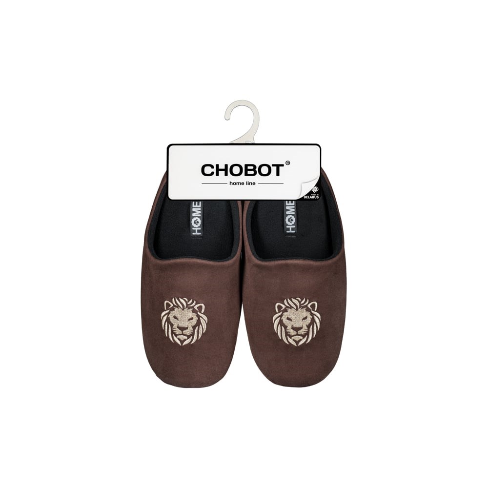 Домашние мужские тапки от белорусского производителя фабрики CHOBOT из текстиля с рисунком Лев. Подошва: кожа искусственная с полиуретановым покрытием Верх: текстиль Стелька: текстиль