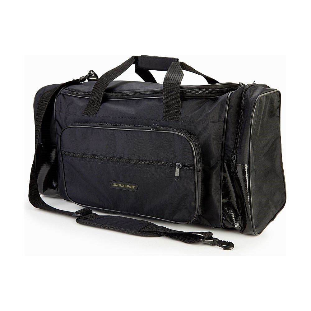 Дорожная сумка с тентовым дном SOLARIS 52 л, Чёрная S5109 предназначена для длительных командировок, путешествий, активного отдыха. Имеет 5 отделений: основное отделение, два больших торцевых кармана, два накладных боковых кармана. Прочная ткань ПВХ устойчива к деформации, износу и низким температурам, что определяет долгий срок службы.