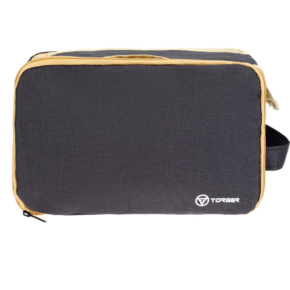 Дорожный несессер Torber чёрный/бежевый, полиэстер 300D, 27x17x14 см T318-BEI имеет большую вместимость при компактных размерах. Изготовлен из высококачественного полиэстера. Для переноски есть ручка. Несессер выполнен в прямоугольной форме, центральное отделение имеет клапан на молнии с двух сторон и магнитной кнопкой на конце. На внешней стороне расположено дополнительное отделение на молнии и включает в себя два сетчатых кармана и три эластичных держателя для мелких предметов.