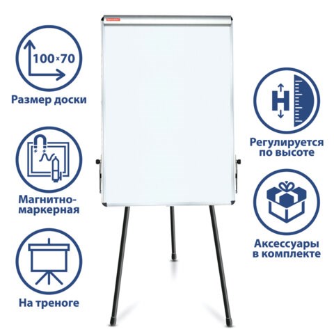 Доска-флипчарт магнитно-маркерная 70х100 см, тренога, ГАРАНТИЯ 10 ЛЕТ, BRAUBERG, 231720