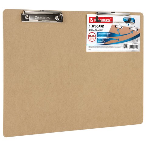Доска-планшет БОЛЬШОГО ФОРМАТА (440х320 мм), А3, BRAUBERG "Eco" с двумя прижимами, МДФ, 3 мм, 232227