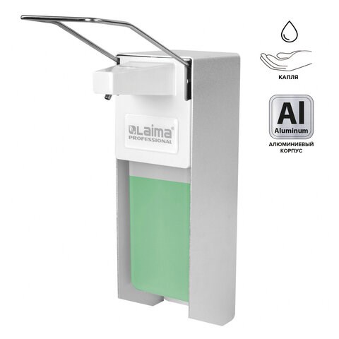 Дозатор локтевой для жидкого мыла и геля-антисептика, с еврофлаконом 1 л, LAIMA, металлический, 605706
