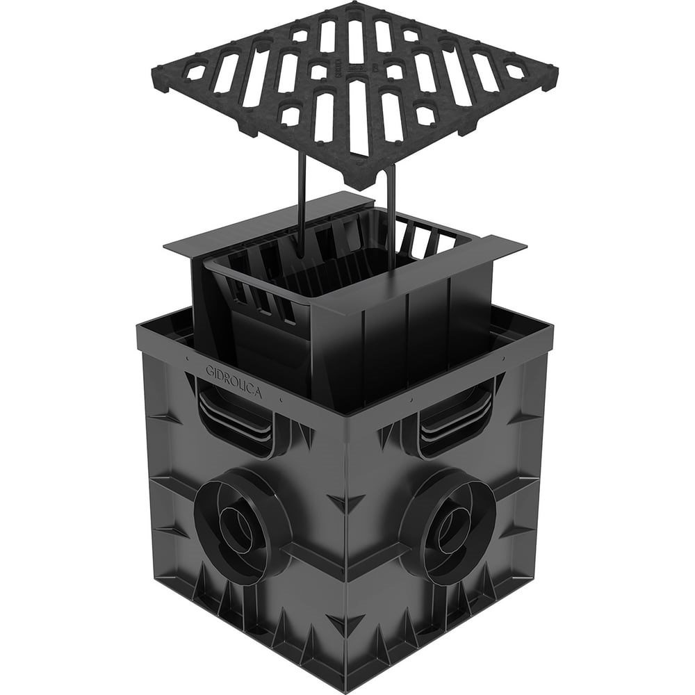 Дождеприемник с двумя сифонными перегородками, корзиной и чугунной решеткой Gidrolica Point класса С250 предназначен для установки под водосточными трубами для сбора и отведения от фундамента зданий дождевых вод, собранных с кровель. Также дождеприемник может быть применен для точечного сбора ливневой воды на участках с пешеходной нагрузкой. В комплектацию дождеприемника входят решетка чугунная, две сифонных перегородки для запирания запахов из канализации и корзина для сбора мусора который смывает ливневыми водами, т.е. листвы, хвои, песка и т.п. Дождеприемник имеет фланцы для соединения с канализационными трубами диаметром 50 и 110 мм для отведения собранных вод из дождеприемника в канализационную систему.