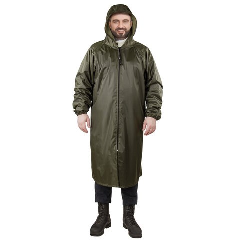 Дождевик-плащ цвета хаки на молнии многоразовый с ПВХ-покрытием, размер 60-62 (XXXL), рост 170-176, ГРАНДМАСТЕР, 610849