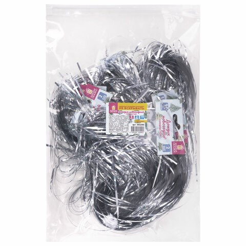 В комплекте – 5 шт. серебристого дождика без эффекта голографии. Упакованы в пакет с зиплоком.