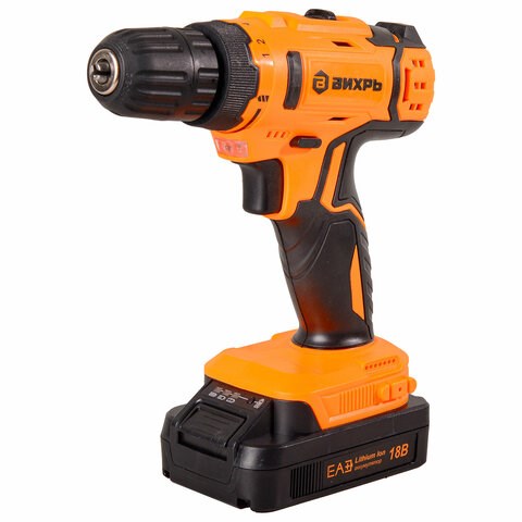 Дрель-шуруповерт безударная АККУМУЛЯТОРНАЯ, с двумя аккумуляторами 2 Ач, 18 В, ВИХРЬ ДА-18Л-2К, 72/14/9